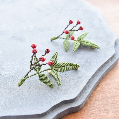 南天のブローチ