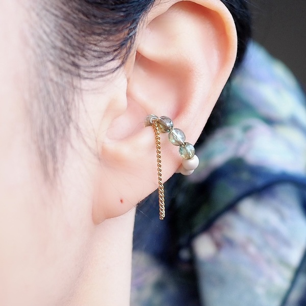 バイカラーチェーンイヤーカフ エメラルド×ミルクティー