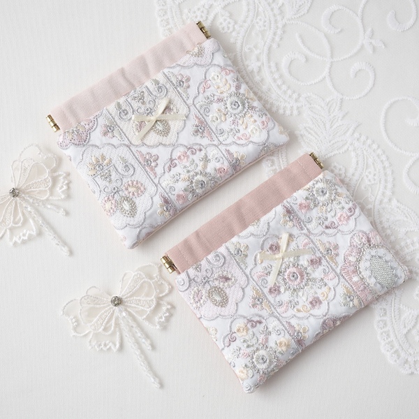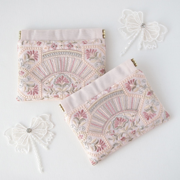インド刺繍リボンを使った、ニュアンスカラーのバネポーチを中心に販売しています。