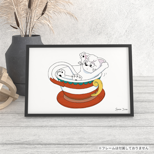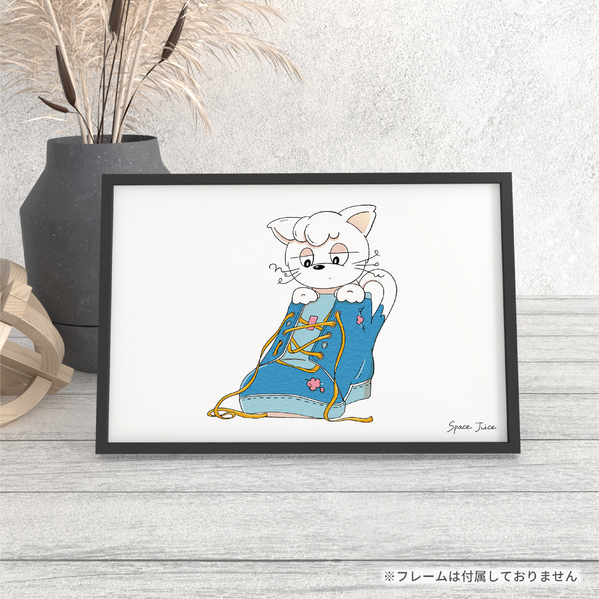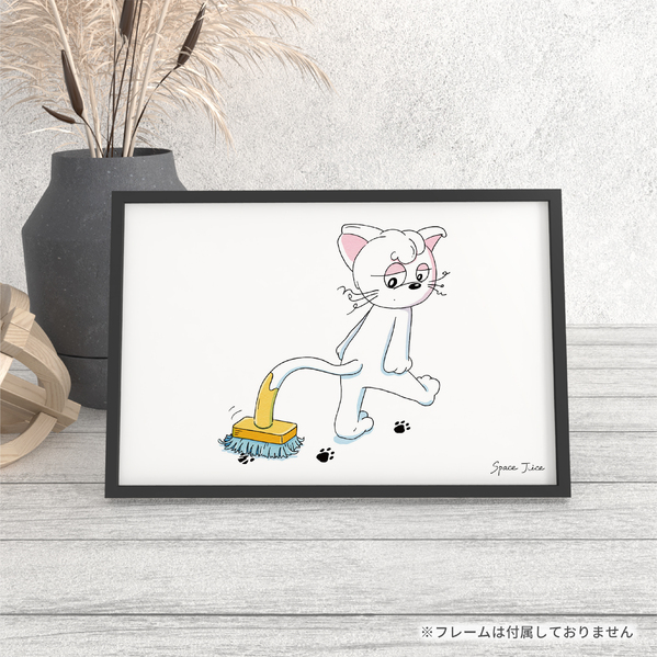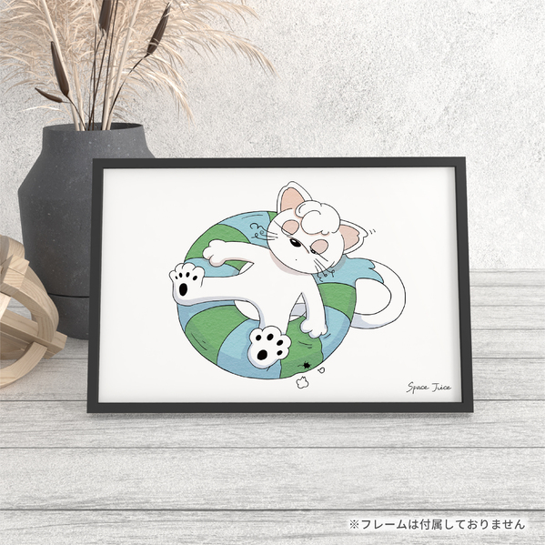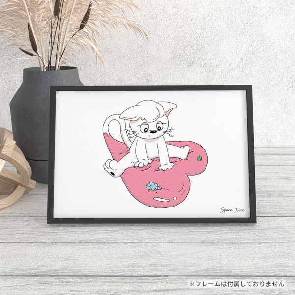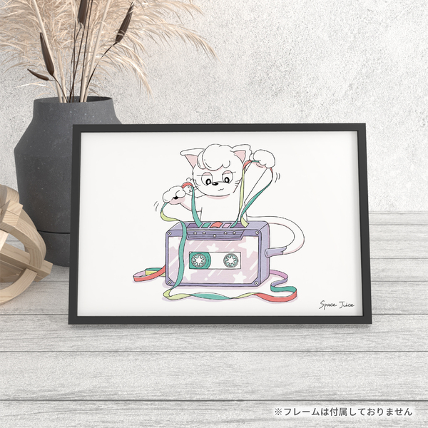 しっぽのカタチが変わるちおっちょこちょいなネコ「Mellow」と、階段と空間をモチーフにしたオリジナルイラスト「SPACE ART」を描いています。
