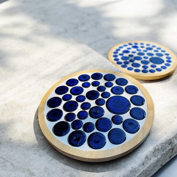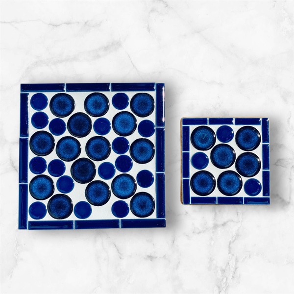 瑠璃色鍋敷きとコースター(タイル)