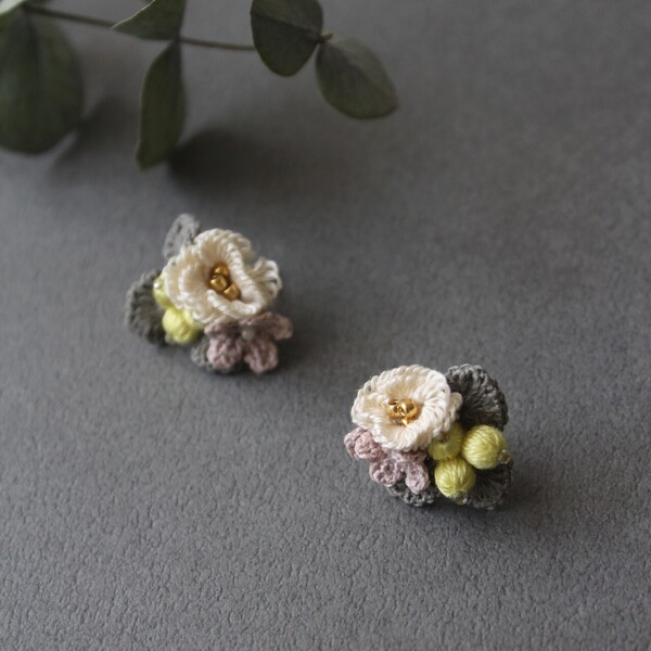 ペールトーンのお花の耳飾り