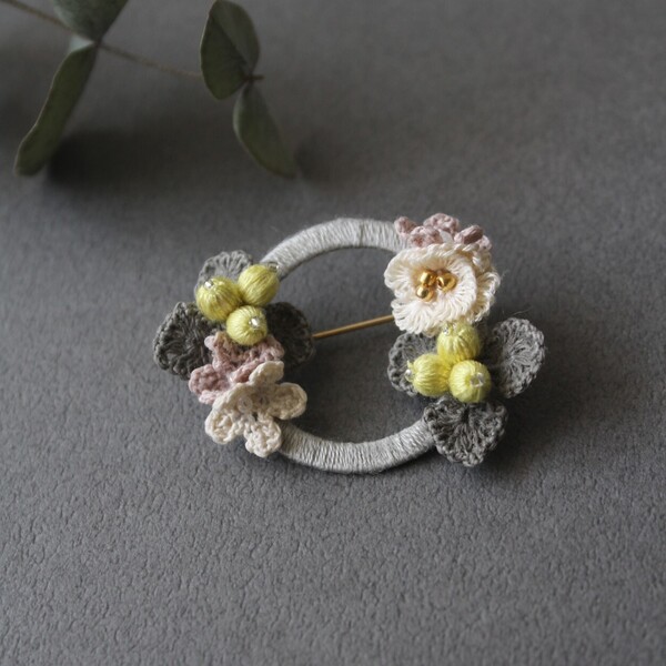 ペールトーンのお花のリングブローチ