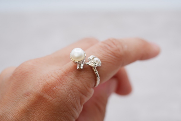 現物鋳造という技法を使い本物の植物を使用して金属にしたジュエリーを製作。植物の持つ筋感やシルエットを活かして他には無いボタニカルな世界観を展開。