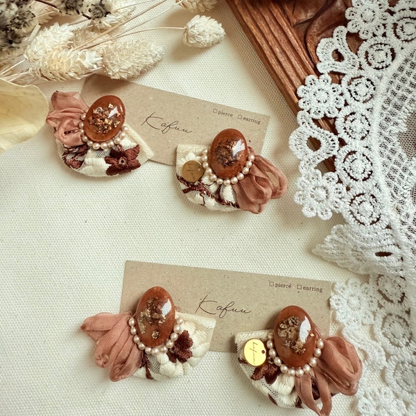 インド刺繍リボンの耳飾り
