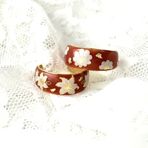 「指先にそっとお花を咲かせるゆびわ」をテーマに、真鍮の土台にレジンで色をつけた指輪を製作しています。お花は全4種類、全てフリーサイズです。