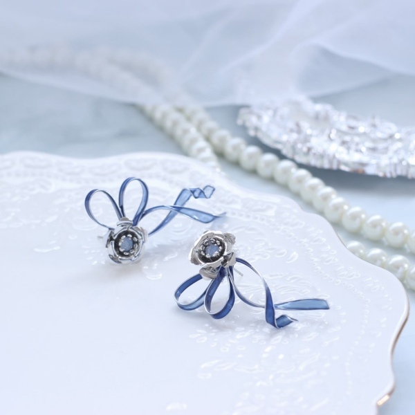 Mon moiの人気NO.1のリボンモチーフの耳飾りや青薔薇の耳飾り、ネックレス、リング、ヘアアクセサリーなどをご用意しています。