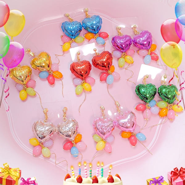 メタルバルーンハートのジェリービーンズイヤリング(ピアス)