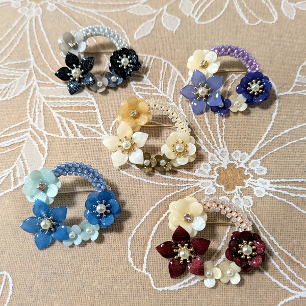 キキョウと小花のブローチ