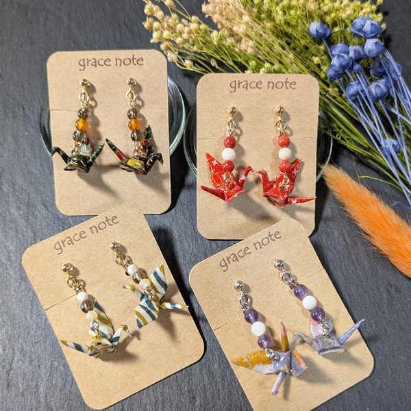 鶴と天然石のアクセサリー