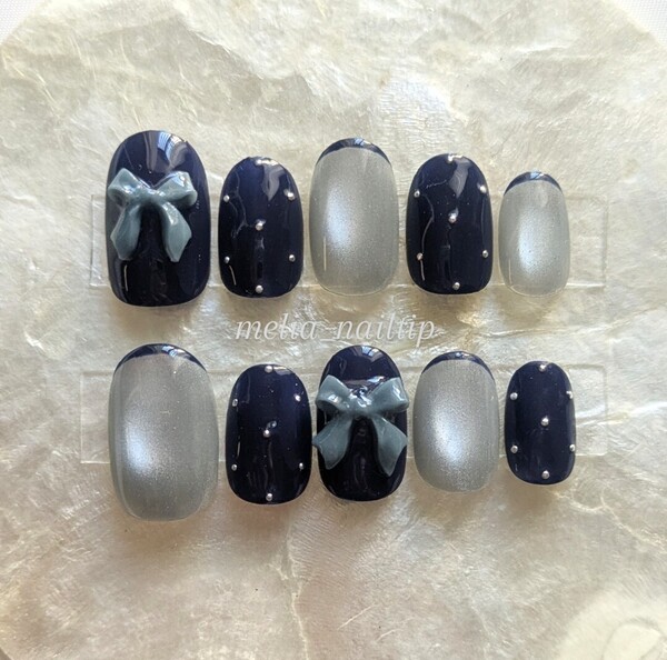 ネイビーリボンネイルチップ