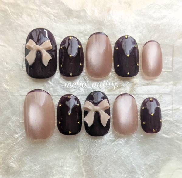 ブラウンリボンネイルチップ