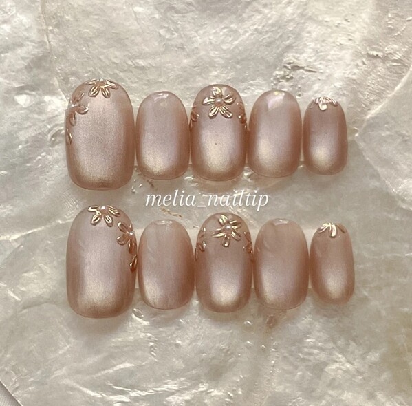 ピンクベージュフラワーネイルチップ