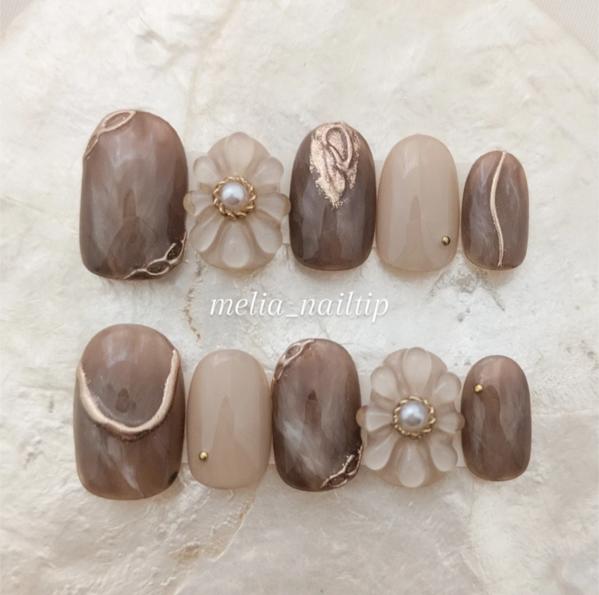 ブラウンニュアンスネイルチップ