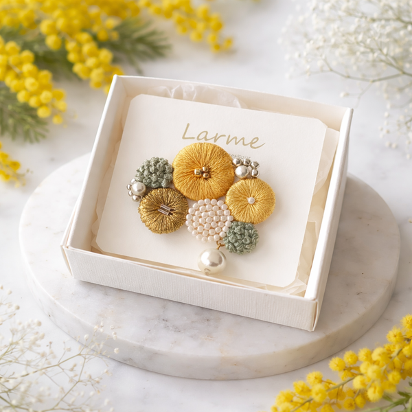 ブローチやピアス・イヤリング・バレッタなどを手刺繍でひと針ひと針丁寧にお作りしています。彩り溢れる刺繍アクセサリーをお届けします。