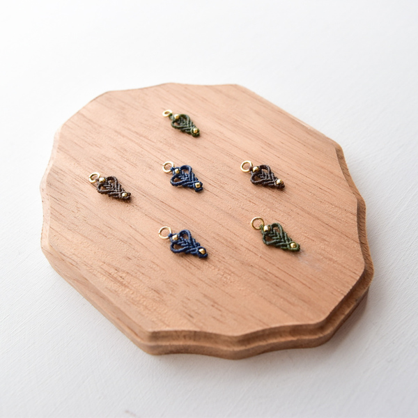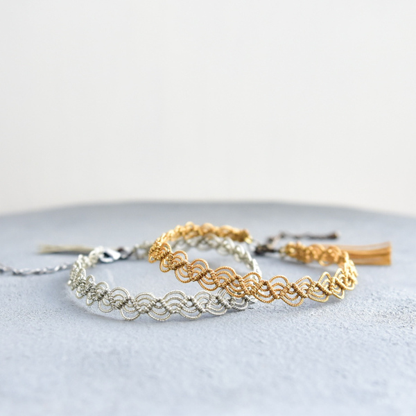 結びの技法「マクラメ」を用いた、糸が主役のアクセサリーを制作しています。 糸が交差し結ばれ、はじめて生まれる模様、表情を楽しんでいただけると嬉しいです。