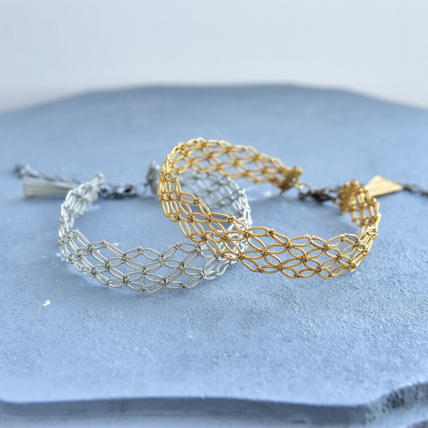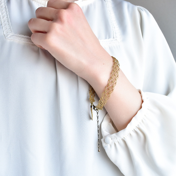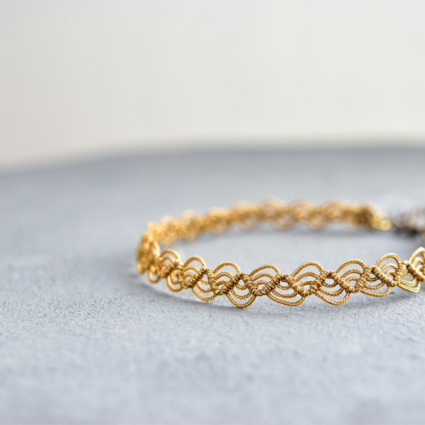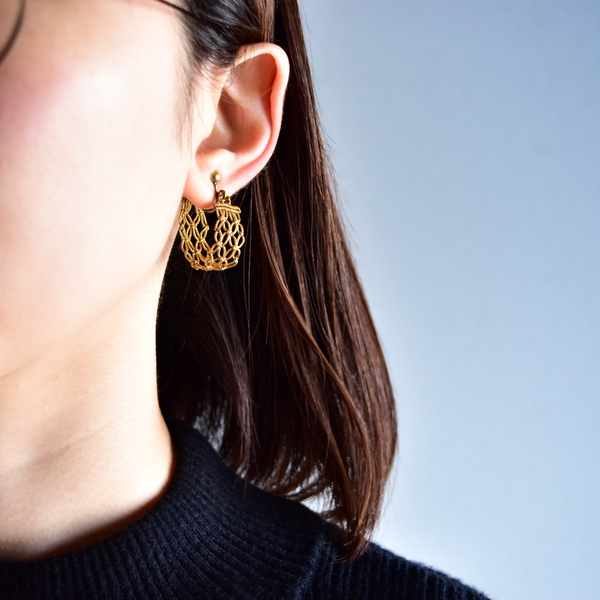 結びの技法「マクラメ」を用いた、糸が主役のアクセサリーを制作しています。