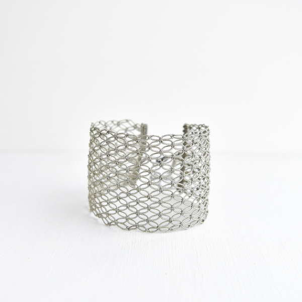 糸が交差し結ばれ、はじめて生まれる模様、表情を楽しんでいただけると嬉しいです。
