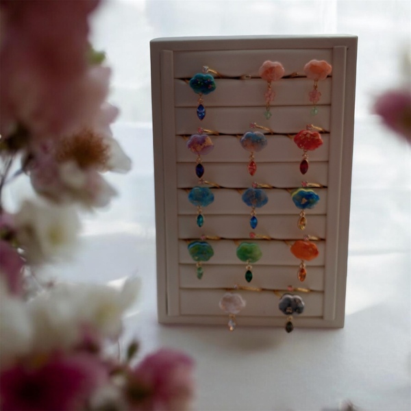 ポリマークレイの着け心地軽やかな色の積み重ねやレジンの透明感を使って雲や日々の生活の一部をアクセサリーにしています。 晴れの日も雨の日もどんなお天気の日も素敵な時間を過ごせますように…そんな願いがこもっています。 色鮮やかな雲の世界でお待ちしております。