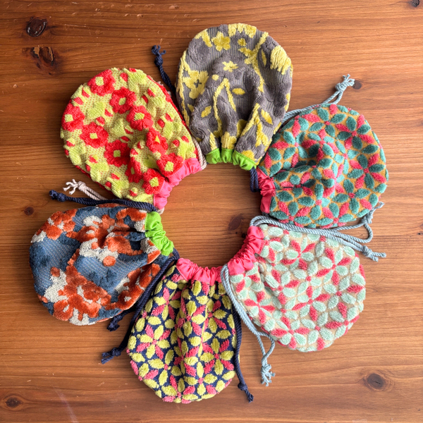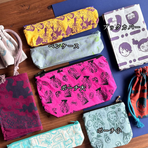 シルクスクリーンでプリントをしたオリジナル生地での布小物