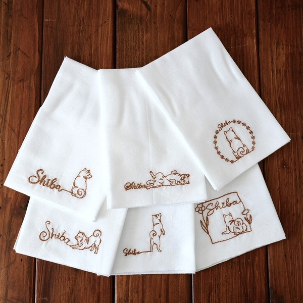 柴さん刺繍のふわふわタオルハンカチ