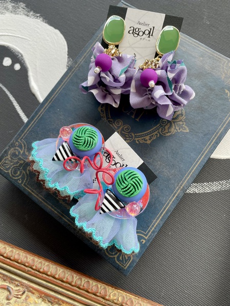 ドライ・プリザーブドフラワーをそのままアクセサリーと自由な発想で個性的なイヤーアクセサリー