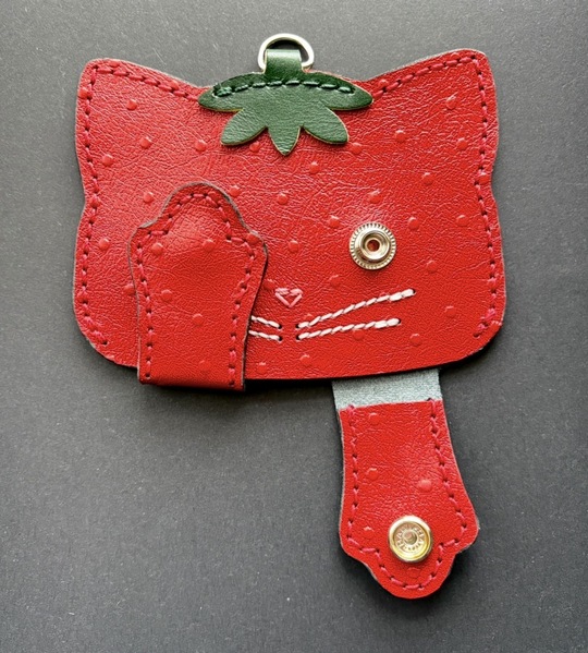 恥ずかしがりやの猫・パスケース 苺バージョン
