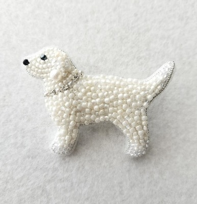 幸せのゴールデンレトリバー|ビーズ刺繡 2wayブローチ・バッグチャーム