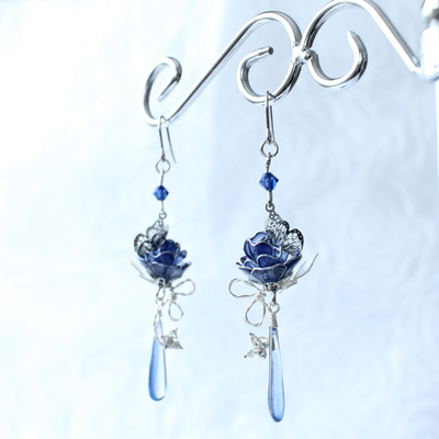 青の奇跡-薔薇と蝶-(ピアス/イヤリング)