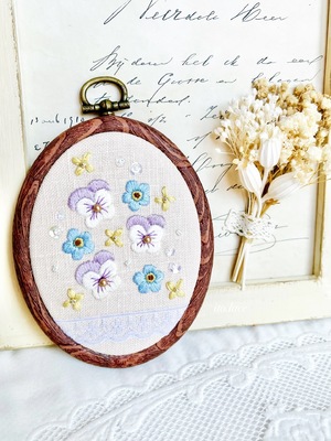 ビオラと勿忘草の刺繍枠