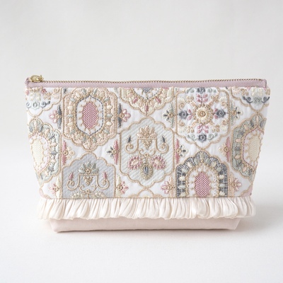 インド刺繍のフリルポーチ