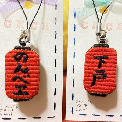提灯刺繍ブローチ&ストラップ