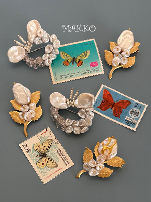 淡水パールのブローチ 蝶々と薔薇