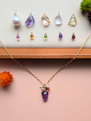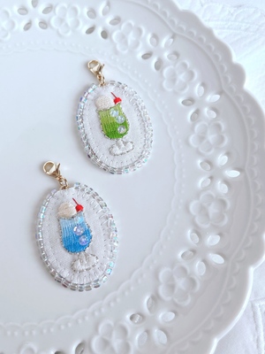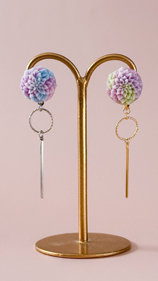 くすみブルーとナッツみたいなビーズ/イヤリングorピアス