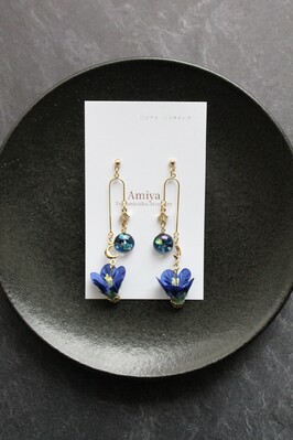 レジンと青いお花のイヤリング