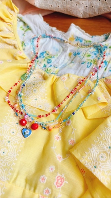 ビーズとヴィンテージパーツの4連ネックレス