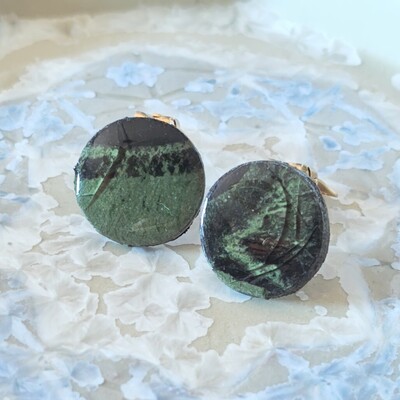 練り込みマーブル陶器イヤリング 黒×緑