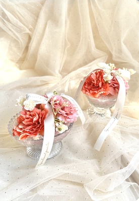 カーネーションのグラスアレンジ