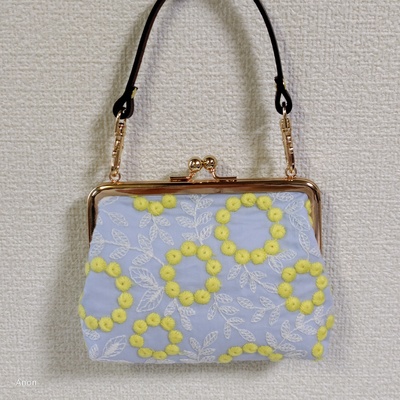 刺しゅう生地のがま口ポーチ