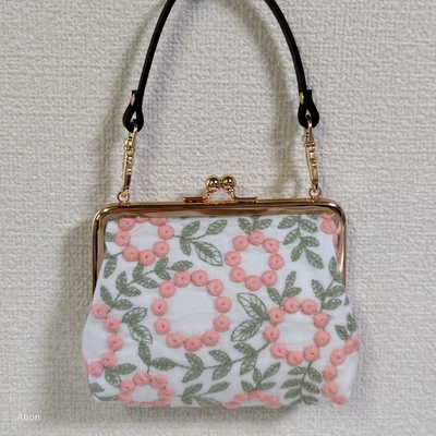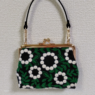 刺しゅう生地のがま口ポーチ