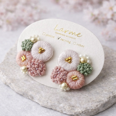 やさしい春色 marumoco刺繍ピアス・イヤリング