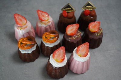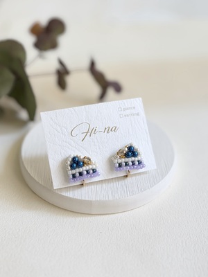 ブルーベリーチーズケーキ刺繍のピアス、イヤリング