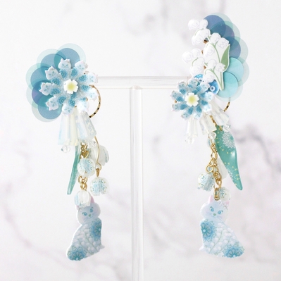 すずらん×ねこ 2wayアシンメトリーピアス/イヤリング